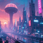Un paysage urbain cyberpunk nocturne, où les gratte-ciels vertigineux se perdent dans un ciel sillonné de voitures volantes. Baignée de néons vibr...[+]