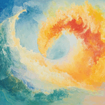 Celestial bodies intertwined with vibrant, swirling clouds. Technique: Oil on canvas, influenced by William Turner and Caspar David Friedrich Artist...[+]