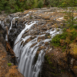 The Englishman River waterfall cascades over rugged rocks surrounded by lush greenery. This beautiful waterfall is one of the most accessible on Vanco...[+]