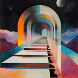 Receding arches form a celestial passage, bathed in otherworldly light. Technique: Acrylic on canvas, influenced by James Turrell and Yves Klein Artist's Intent: To evoke a sense of wonder and introspection, inviting viewers on a visual journey through a celestial passage. Contribution: Appeals to collectors interested in contemporary abstract art with spiritual or transcendental themes. Strong potential for gallery exhibitions and high-end interior design. Influences: Geometric abstraction with perspective and light manipulation, creating an ethereal journey through receding arches.