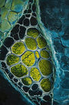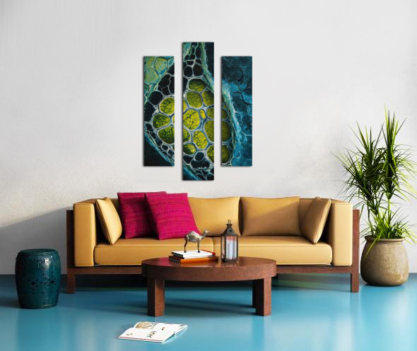 Abstract depiction of cellular growth, with vibrant colors and dynamic forms. Technique: Acrylic on canvas, influenced by Helen Frankenthaler and Jackson Pollock Artist's Intent: To evoke a sense of wonder and exploration of microscopic life and natural processes. Contribution: Appeals to collectors interested in abstract art, biomorphic forms, and unique textural effects. Strong potential for both residential and corporate settings. Influences: Fluid acrylic pouring technique creating organic, cell-like structures.