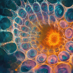 Abstract representation of cellular growth and biological processes Technique: Digital, influenced by Ernst Haeckel and Andreas Gursky Artist's ...[+]