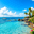 TROPICAL PARADISE WITH TURQUOISE WATERS PALM TREES AND A SAILING YACHT