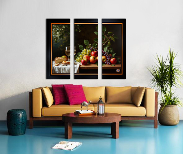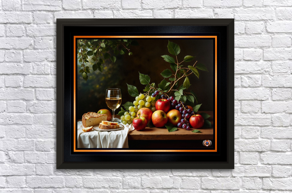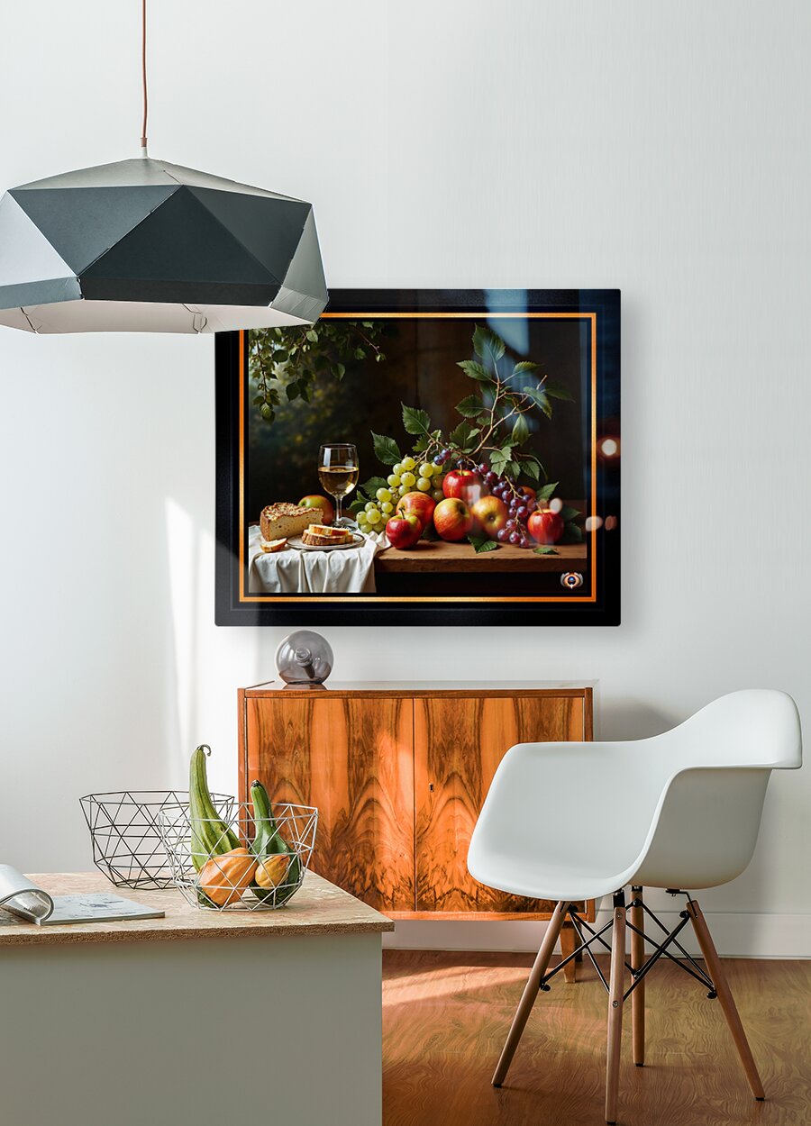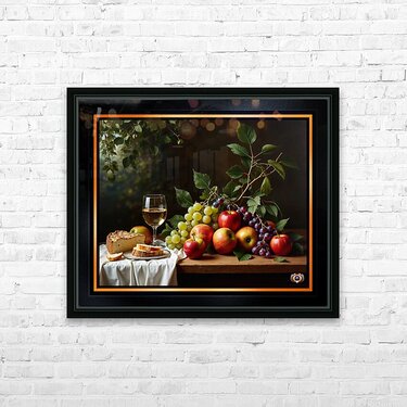 Still Life of Wine Grapes and Apples in a Tranquil Garden Setting Alluring AI Concept Art by Xzendor7 Wall Decor Frame