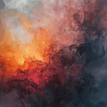 Abstract depiction of a celestial inferno, blending fiery hues with ethereal textures. Technique: Acrylic on canvas, influenced by Helen Frankenthaler and Mark Rothko Artist's Intent: To evoke a sense of awe and wonder at the dynamic forces of the universe. Contribution: Strong market appeal for abstract art enthusiasts, particularly those drawn to atmospheric and emotional pieces. Suitable for both residential and corporate spaces. Influences: Fluid acrylic pouring technique creating atmospheric depth and luminous color transitions.