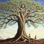 Roots of Generations" A large, ancient tree where its roots intertwine with the figures of ancestors, symbolizing family heritage and the deep connec...[+]