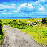 Explore the breathtaking watercolor landscape of Inishmore Aran Islands in Ireland. This vibrant artwork captures the rolling green hills and serene b...[+]