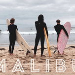 THREE SURFERS AT MALIBU WITH TEXT