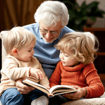 A Grandparent Reading a Story to a Child This heartwarming image captures the love between generations, passing down knowledge, wisdom, and care.