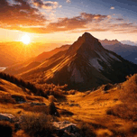 STUNNING MURAL FEATURING A BREATHTAKING SUNRISE OVER A MAJESTIC MOUNTAIN RANGE