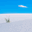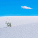 A single cloud floats in a bright blue sky above a pristine white sand dune, where a small tuft of grass emerges. The simple and serene landscape evok...[+]