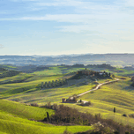 Countryside landscape and a road in the Crete Senesi. Province of Siena, Tuscany region, Italy