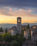 ASSISI TOWN AND SANTA MARIA MAGGIORE CHURCH. UMBRIA ITALY