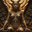 A woman with golden horns and wings sits on a throne her eyes focused intently on the viewer. She is adorned in elaborate golden armor intricately car...[+]