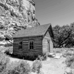Built in 1896, this little wooden building is the Fruita Schoolhouse in Capitol Reef National Park in Torrey, Utah. This is the black and white version. Besides being the communities only school, it was also used as a church meeting house, and community center. The population went down and in 1941, the last class was taught there before they closed it down. This building is registered on the US National Register of Historical Places. Behind the school is a tall cliff. This photo was taken by Jennifer White with Timeless Moments Photography. All images are copyrighted © Timeless Moments Photography/Jennifer White. All rights reserved. Please note the watermark does not print on ordered products.