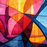 Abstract composition with vibrant overlapping color fields. Technique: Digital painting, influenced by Wassily Kandinsky and Sonia Delaunay Artist&#...[+]