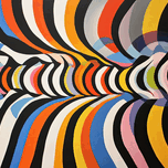 Vivid stripes undulate and converge, creating a sense of rhythmic motion and visual energy. Technique: Acrylic on canvas, influenced by Victor Vasare...[+]