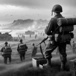 WWII Remembered - The Battlefront BW"... Rendered in striking black-and-white, this powerful wartime scene brings history to life with dramatic contra...[+]