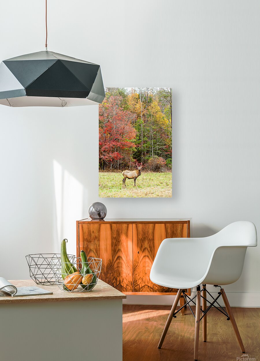 Bull Elk in Cataloochee Valley in North Carolina    HD Metal print with Floating Frame on Back