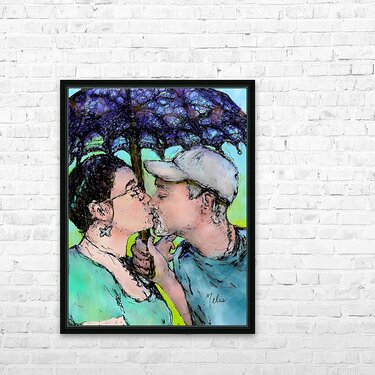 Lovers Kissing colored in   to be printed as 21 x Picture Frame Printing