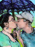 ABOUT THIS ARTWORK: LOVERS KISSING COLORED IN TO BE PRINTED AS 21 X