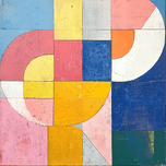 Interlocking geometric forms and color fields create a dynamic visual rhythm. Technique: Acrylic on canvas, influenced by Piet Mondrian and Josef Albers. Artist's Intent: To evoke a sense of balance and dynamism through the interplay of color and form. Contribution: Appeals to collectors of modern and abstract art. Suitable for corporate and residential spaces. Influences: Hard-edge painting technique with flat color fields and geometric shapes. Visible brushstrokes and textured layering add depth.