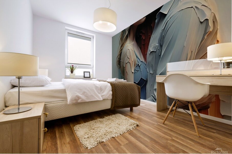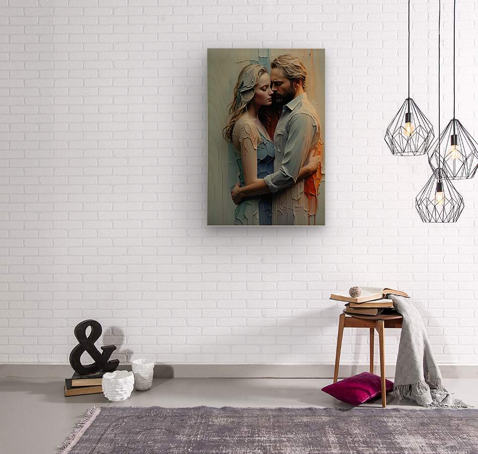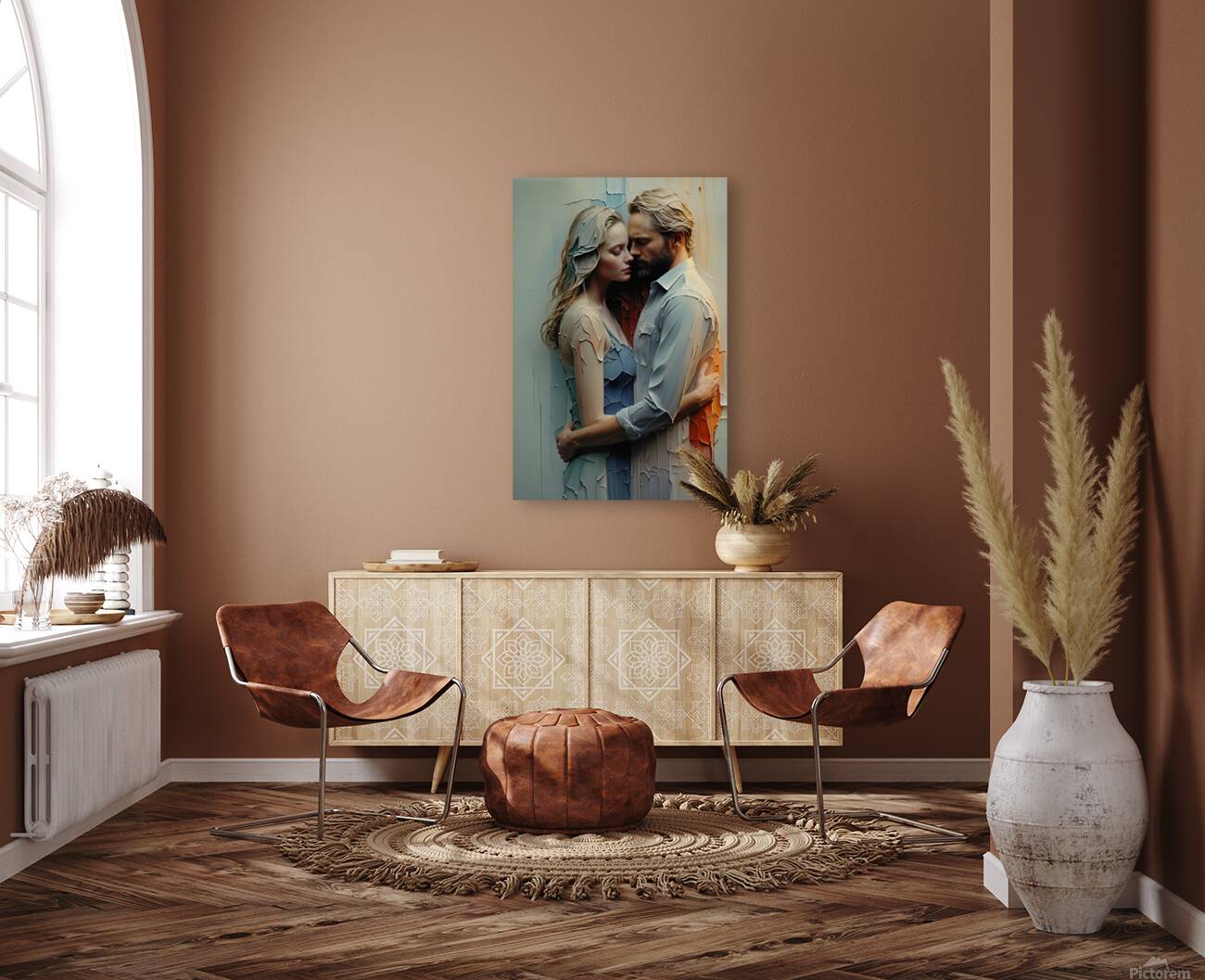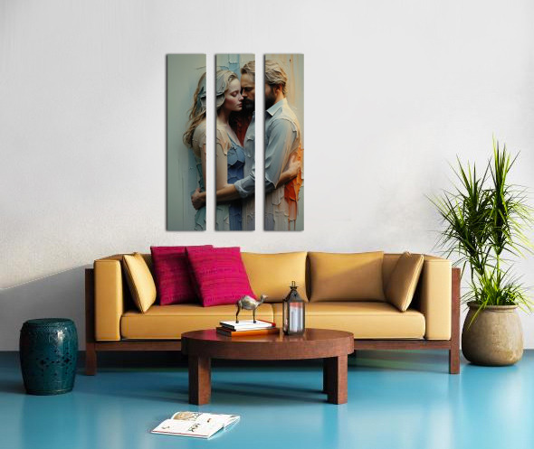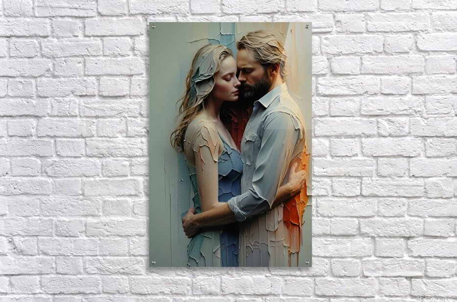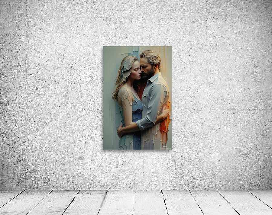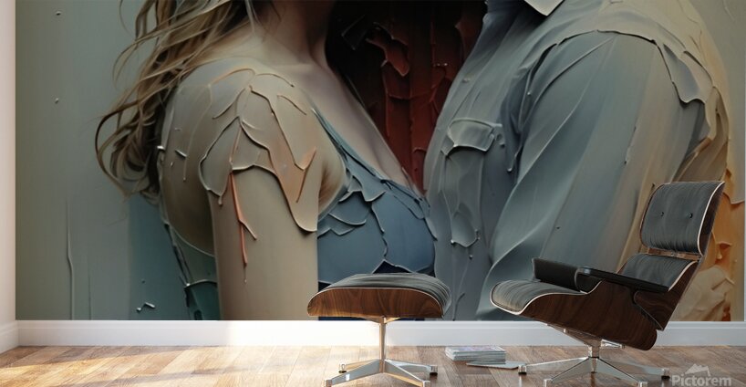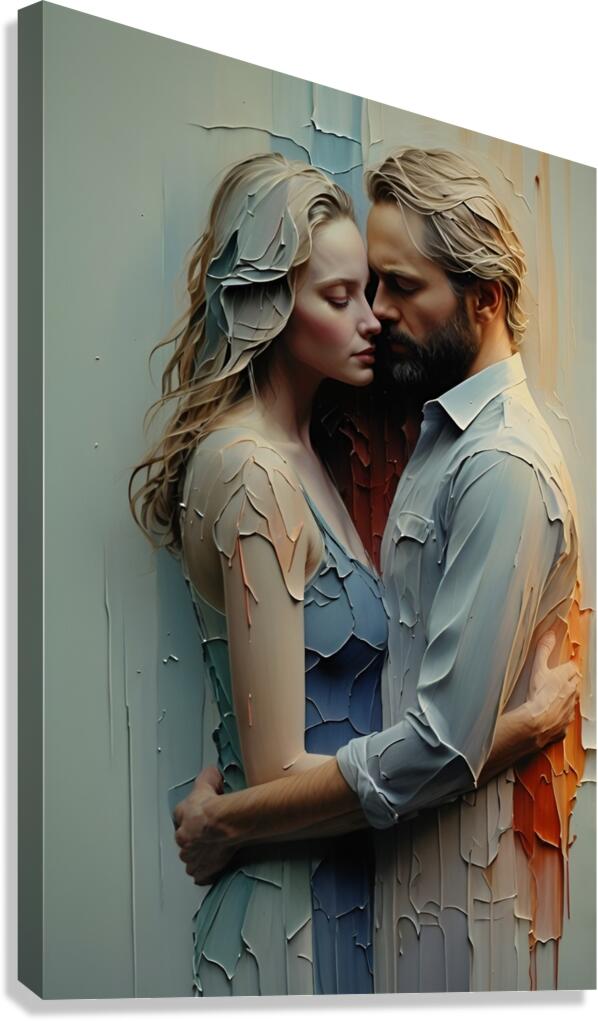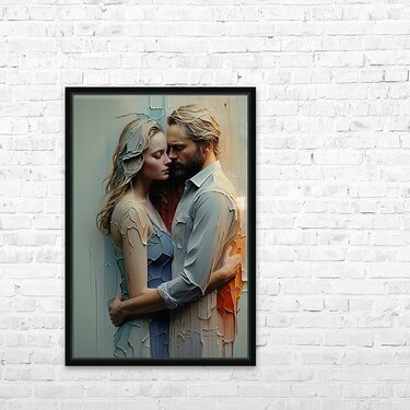 This stunning artwork captures an intimate embrace between a man and a woman, blending realism with a textured, painterly effect. The fluid transition between their forms and the background creates a mesmerizing illusion of love merging with art itself. With soft yet striking colors, this piece evokes deep emotion and is perfect for home decor, adding warmth and elegance to any space. Ideal for modern and contemporary interiors, it serves as a focal point that sparks conversation and admiration.