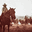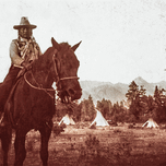 HORSE ON HORSE WITH TEEPEES AND MOUNTAINS