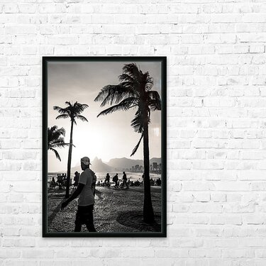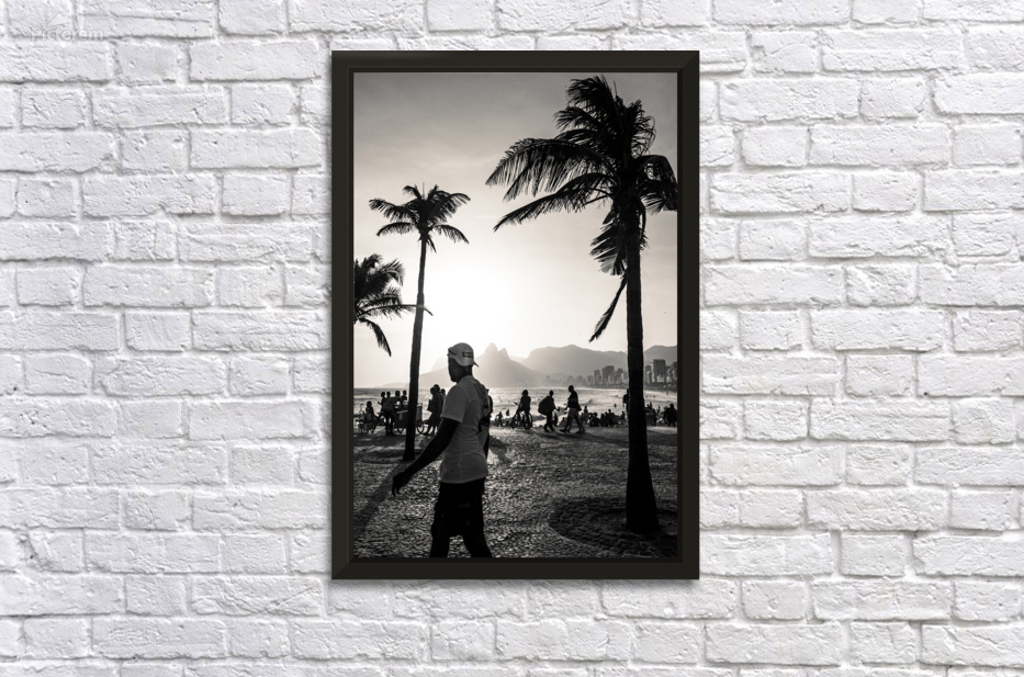 Black and white photo of people strolling along the promenade at Ipanema Beach in Rio de Janeiro  Picture Frame Printing
