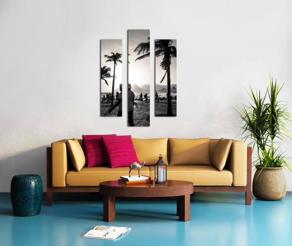 BLACK AND WHITE PHOTO OF PEOPLE STROLLING ALONG THE PROMENADE AT IPANEMA BEACH IN RIO DE JANEIRO  CALADOART  Canvas Print