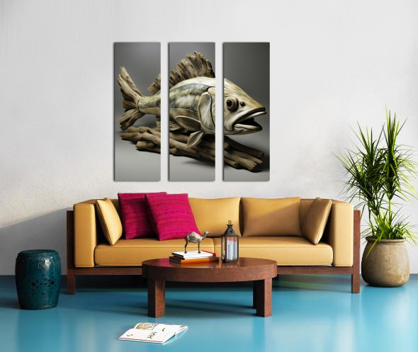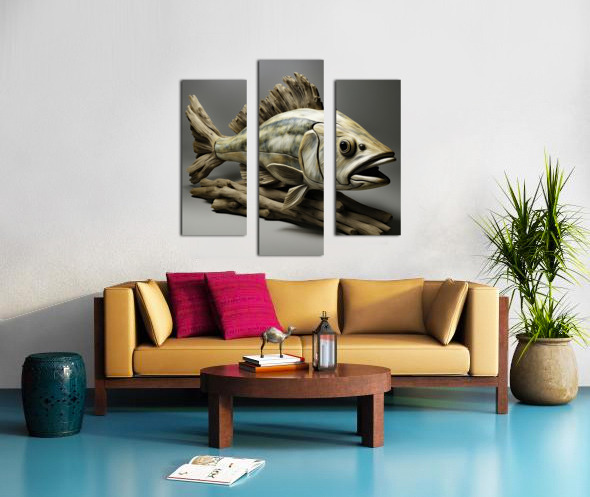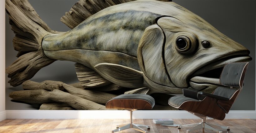 DRIFTWOOD ART OF A LARGEMOUTH BASS.
