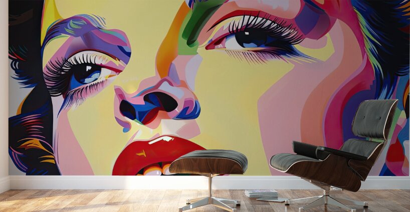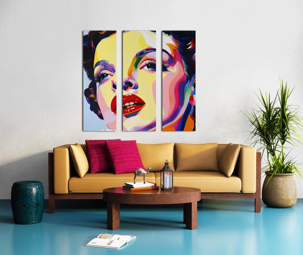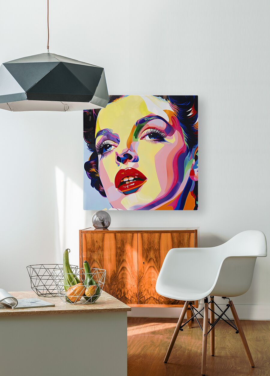 Close-up portrait with stylized features and bold color blocking. Technique: Acrylic on canvas, influenced by Andy Warhol and Roy Lichtenstein Artist's Intent: To capture the essence of a glamorous icon through a vibrant and contemporary pop art aesthetic. Contribution: High market appeal due to its vibrant colors, recognizable subject, and contemporary pop art style. Suitable for modern and eclectic décor. Influences: Bold color blocking, sharp lines, and exaggerated features create a stylized portrait.
