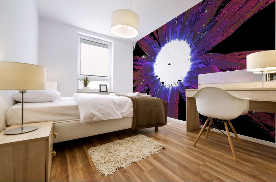 ABOUT THIS ARTWORK: ABSTRACT VIBRANT RED AND PURPLE DAISY FLOWER