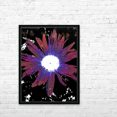 Originally a coloured close up photo of a Daisy flower laterally digitally manipulated into a stunning piece of contemporary floral art. Features a vi...[+]