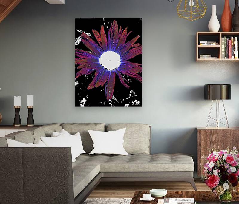 Get this artwork "Abstract Vibrant Red and Purple Daisy Flower" in a framed print.