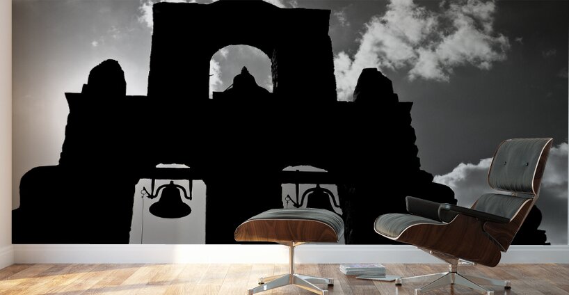 Silhouette of a Spanish mission with bells to call the population to worship. Original photographic artwork. Credit: DeepEarth Photography (original image)