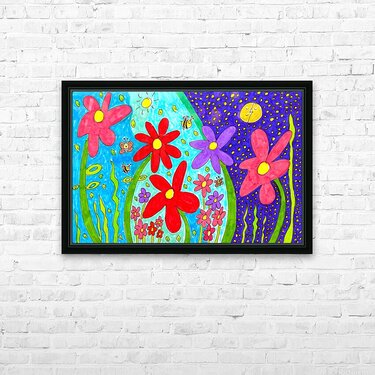 Abstract Flowers Butterflies and Bees Picture Frame Printing