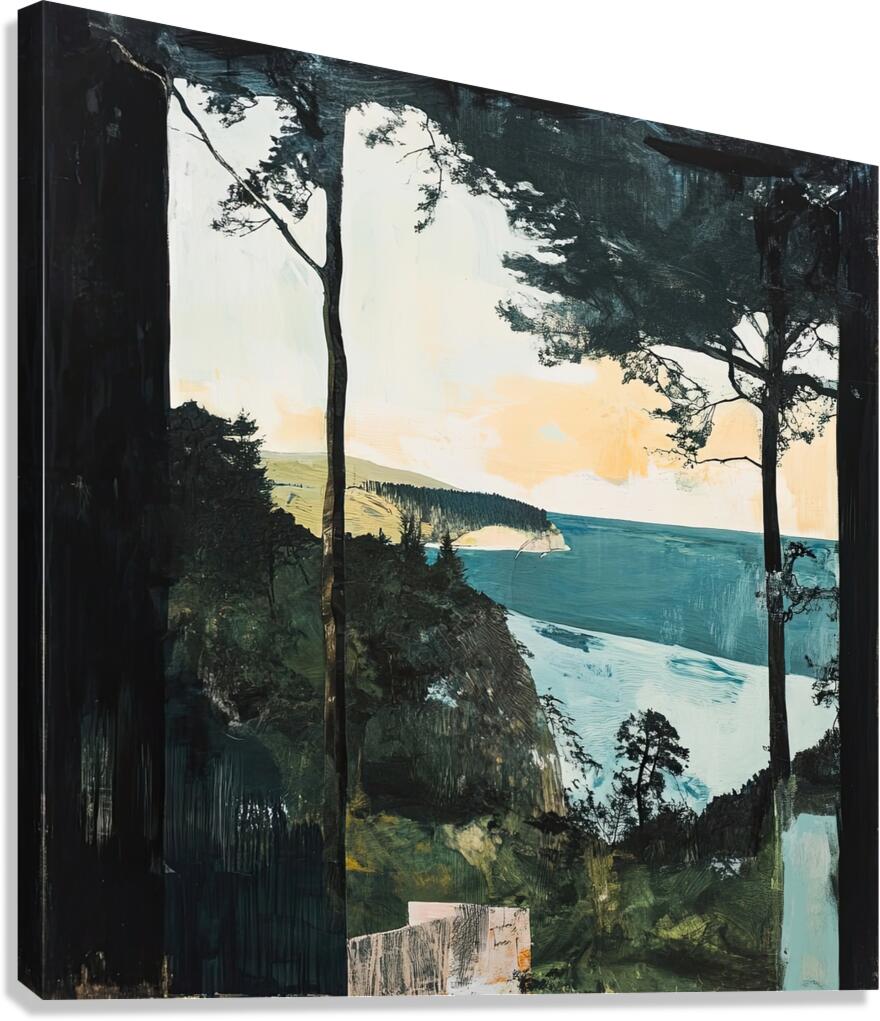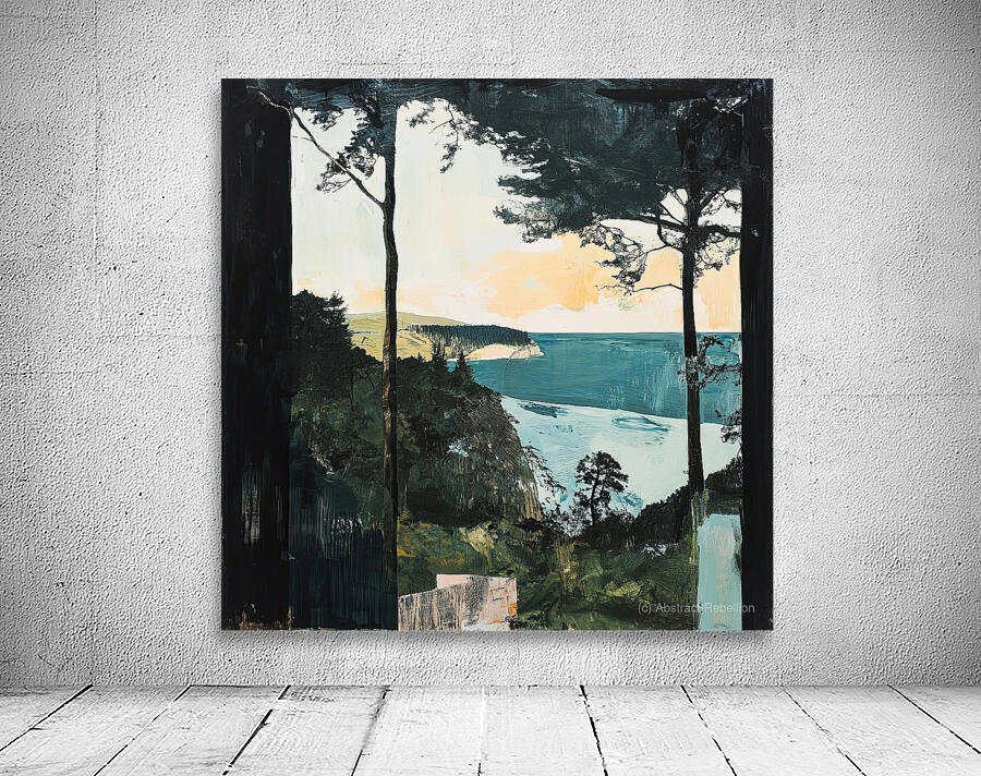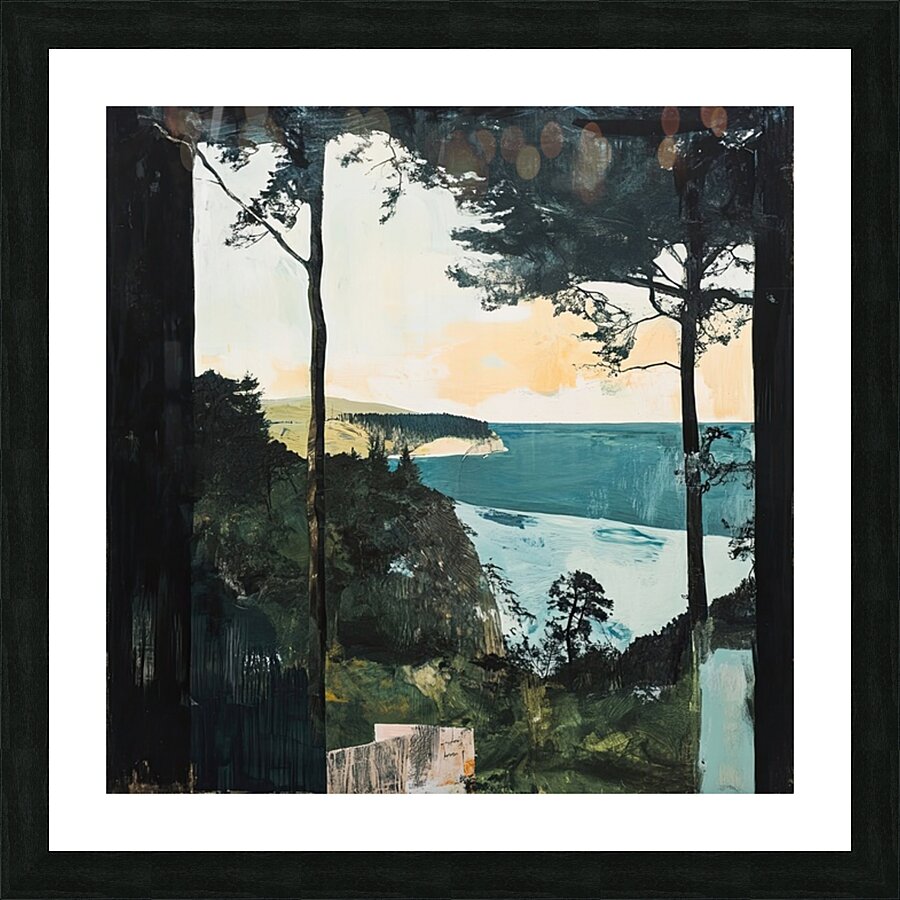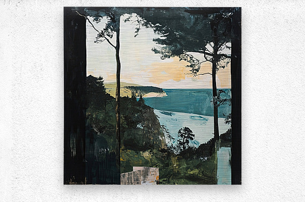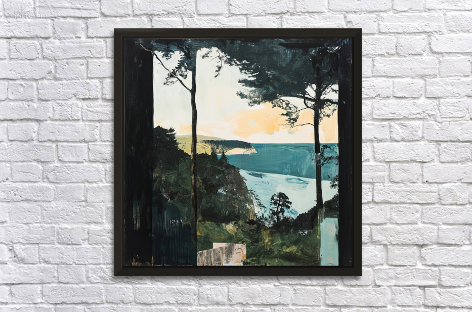 A coastal landscape viewed through a fragmented lens, blending photographic realism with abstract expression. Technique: Mixed media on canvas, influenced by David Hockney and Ansel Adams Artist's Intent: To evoke a sense of place and memory through a fragmented, dreamlike portrayal of a coastal landscape. Contribution: Appeals to collectors interested in contemporary landscape, mixed media, and collage art. The artwork's evocative mood and unique style position it well in the high-end décor market. Influences: Collage and photomontage techniques blended with painterly textures and impasto. Landscape elements are juxtaposed with abstract passages, creating a dynamic interplay between representation and abstraction.