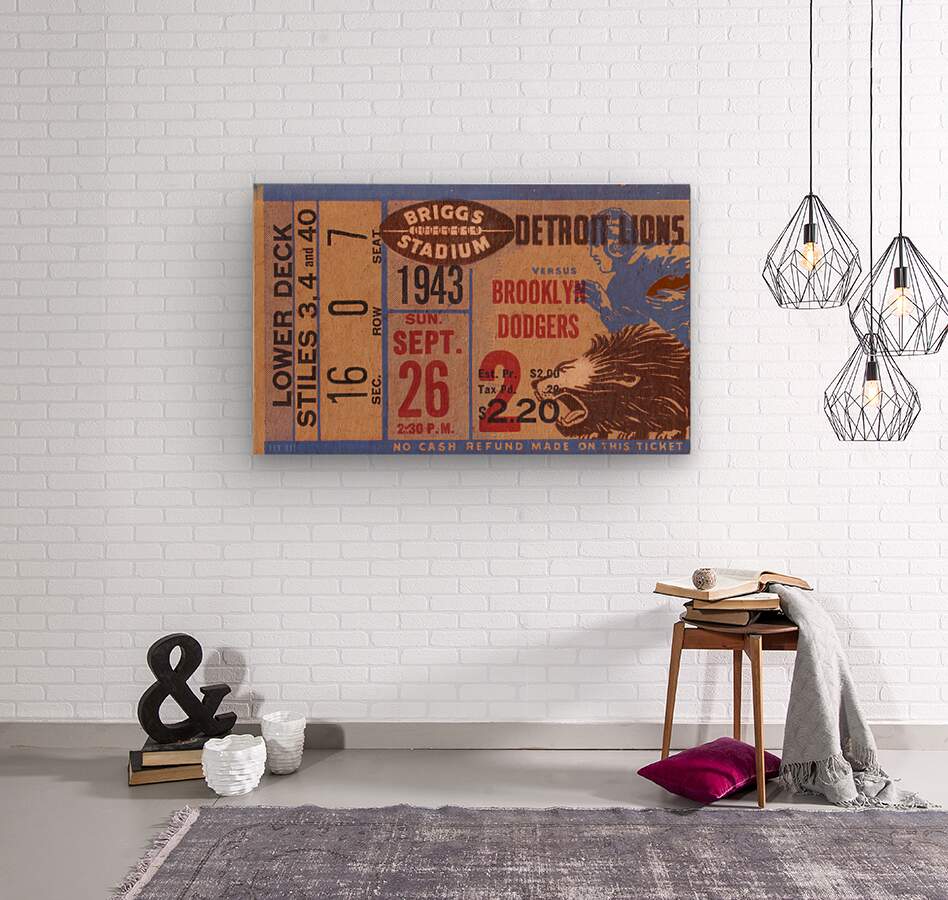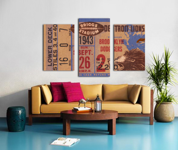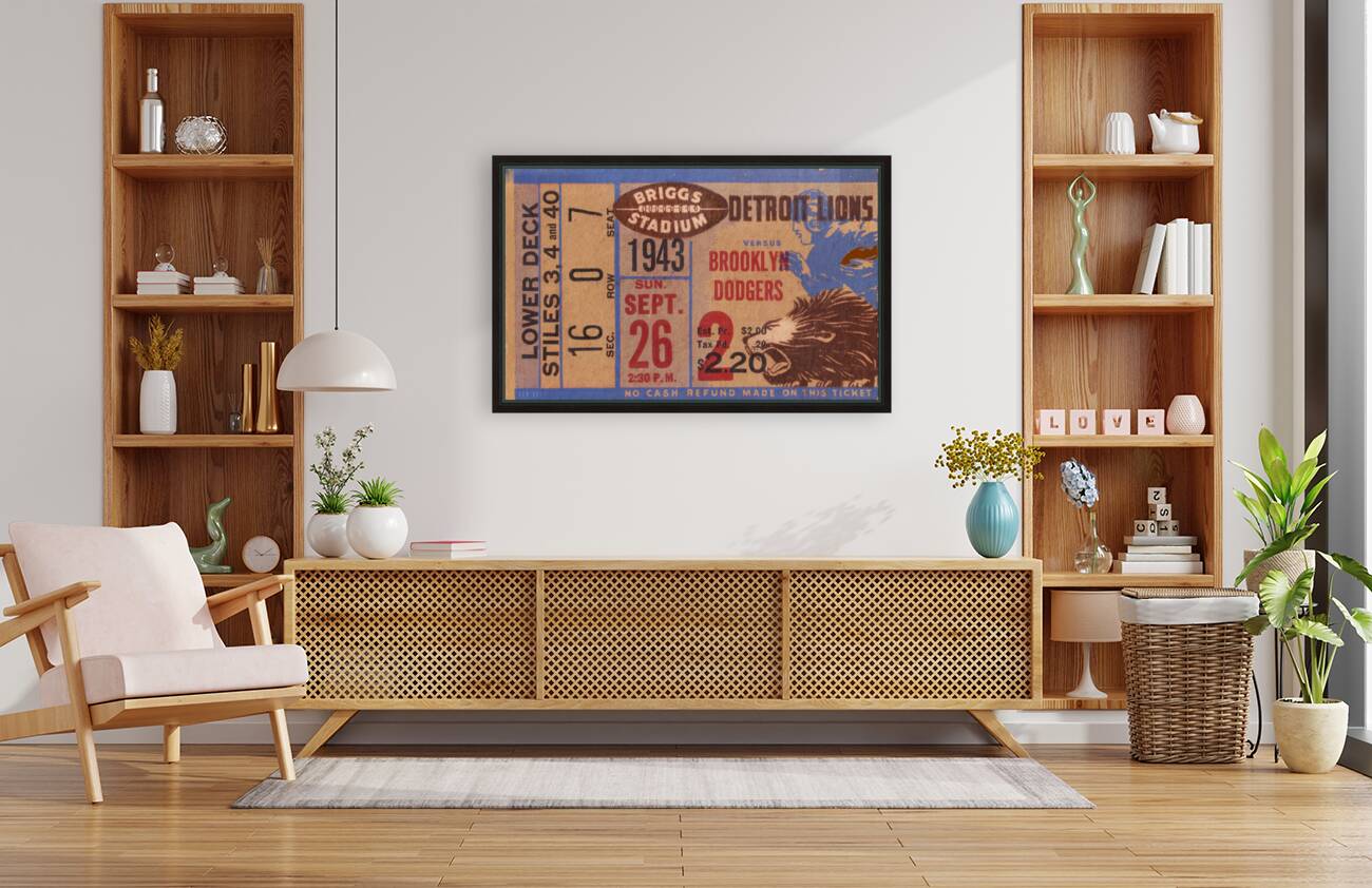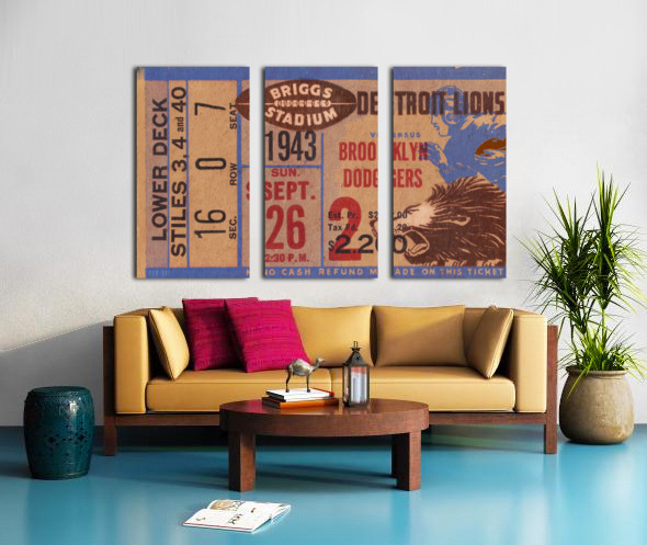vintage detroit lions ticket wall art