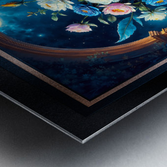 Glorious Floral Bouquet In A Majestic Blue Vase Under A Moonlit Sky Captivating AI Concept Art by Xzendor7 Picture Frame Printing