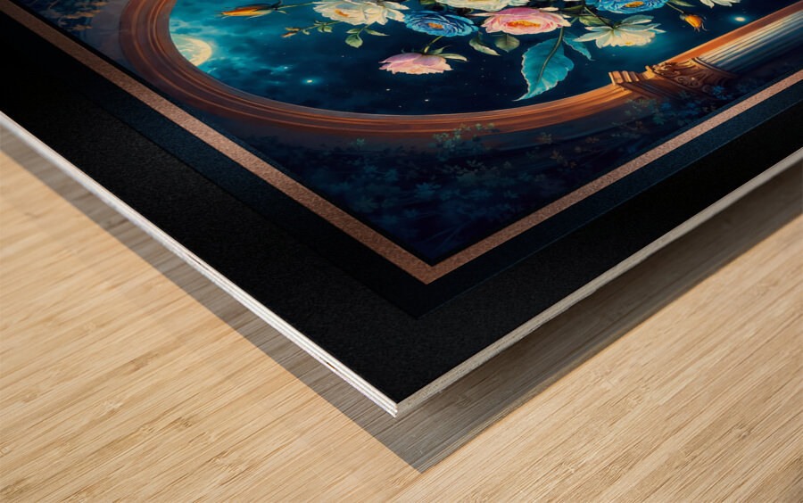 Glorious Floral Bouquet In A Majestic Blue Vase Under A Moonlit Sky Captivating AI Concept Art by Xzendor7  Wood print