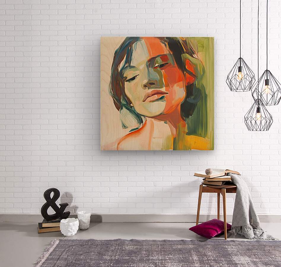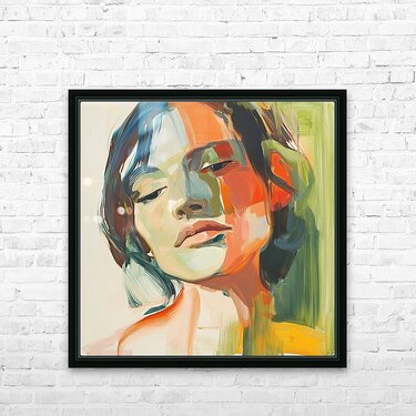 Modern portrait with fragmented color blocks, capturing a contemplative expression. Technique: Oil on canvas, influenced by Alice Neel and Elizabeth Peyton. Artist's Intent: To convey a sense of quiet contemplation and inner life through a modern portrait. Contribution: Appeals to collectors of contemporary portraiture and figurative art. The emotional depth and technical skill resonate with a sophisticated audience. Influences: Expressive brushstrokes and color blocking create a sense of immediacy and depth. The portrait captures a fleeting moment of introspection.
