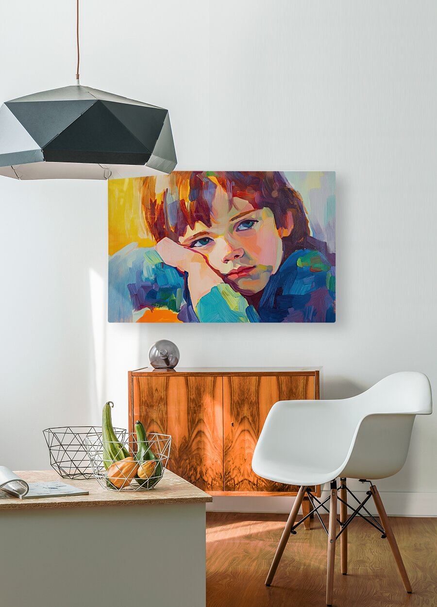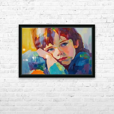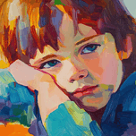 Expressive portrait of a child, capturing a moment of quiet contemplation. Technique: Acrylic on canvas, influenced by Vincent van Gogh and Alice Neel. Artist's Intent: To evoke a sense of introspection and childhood wonder through the child's pensive expression and vibrant color palette. Contribution: Appeals to collectors interested in contemporary portraiture, expressive art, and emotionally resonant artwork. Strong potential for both private collections and public exhibition. Influences: Impasto technique with visible brushstrokes and vibrant color palette. Focus on capturing emotional depth through facial expression.