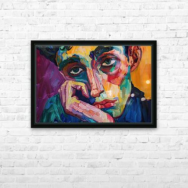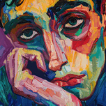 Modern portrait with a contemplative expression, rendered in a vibrant, impasto style. Technique: Oil on canvas, influenced by Ernst Ludwig Kirchner ...[+]