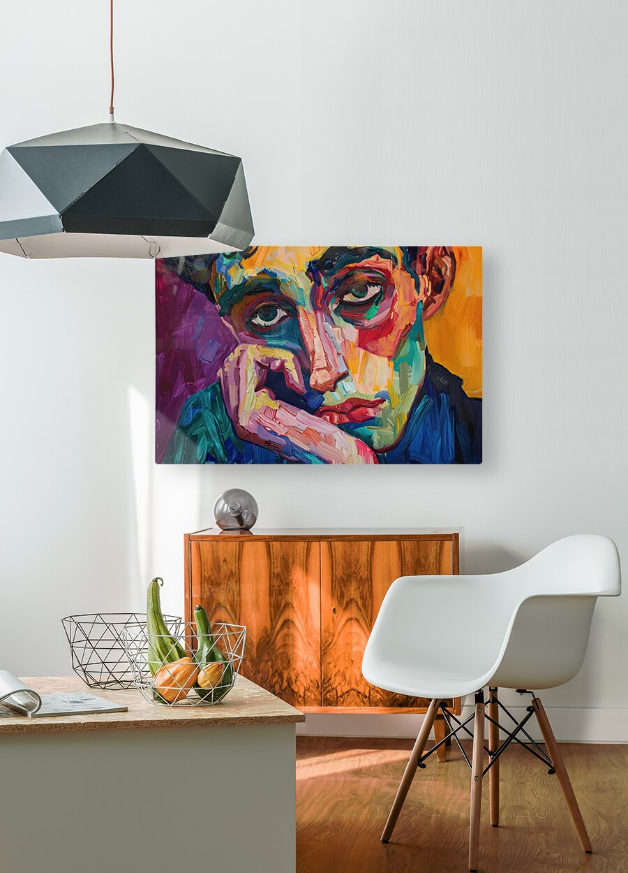 Modern portrait with a contemplative expression, rendered in a vibrant, impasto style. Technique: Oil on canvas, influenced by Ernst Ludwig Kirchner and Paula Modersohn-Becker. Artist's Intent: To capture a moment of introspection and convey a sense of quiet contemplation through color and texture. Contribution: Strong appeal to collectors of contemporary portraiture and expressionist art. Potential for high-value sales. Influences: Impasto technique with visible brushstrokes and vibrant color juxtapositions. Expressive and textured application of paint.