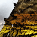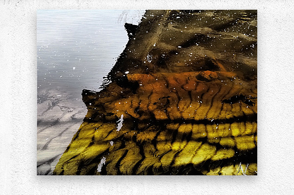 A coloured photo featuring ripples in the water create a mesmerizing pattern of reflections with hints of yellow and orange. The surface appears cal...[+]