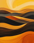 Waves of warm hues like orange, yellow, and brown flow seamlessly across the canvas, creating an impression of undulating desert sands. Smooth, curvil...[+]