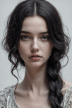 In a quiet ethereal moment a young woman emerges as the protagonist of a tale that whispers of timeless beauty and silent stories. Her long dark hair cascades in gentle waves with a single braid snaking down one side creating an intimate contrast to the shimmering delicate fabric of her attire which glimmers softly in the ambient light. Her features are striking yet serene capturing a fleeting yet profound expression that suggests depths of thought and feeling. The subtleties of her skin tone kissed by a soft glow hint at the countless experiences that have shaped her journey perhaps countless dreams imagined in the twilight hours. With her eyes like deep pools of water she seems to hold the secrets of the universe inviting the observer into a world of imagination. As the backdrop fades into an indistinct blend of soft colors it emphasizes her presence anchoring her as a symbol of grace in a fleeting moment. The simplicity of the scene’s composition speaks to the power of authenticity—how beauty when unadorned resonates the most deeply. In this tableau one cant help but ponder what thoughts dance behind her gentle gaze. Is she contemplating a future yet to unfold or is she reflecting on past memories that flutter like leaves in the wind? Perhaps she stands at the crossroads of possibility embodying both vulnerability and strength a reminder that every façade hides a rich tapestry of stories dreams and aspirations waiting to be told.