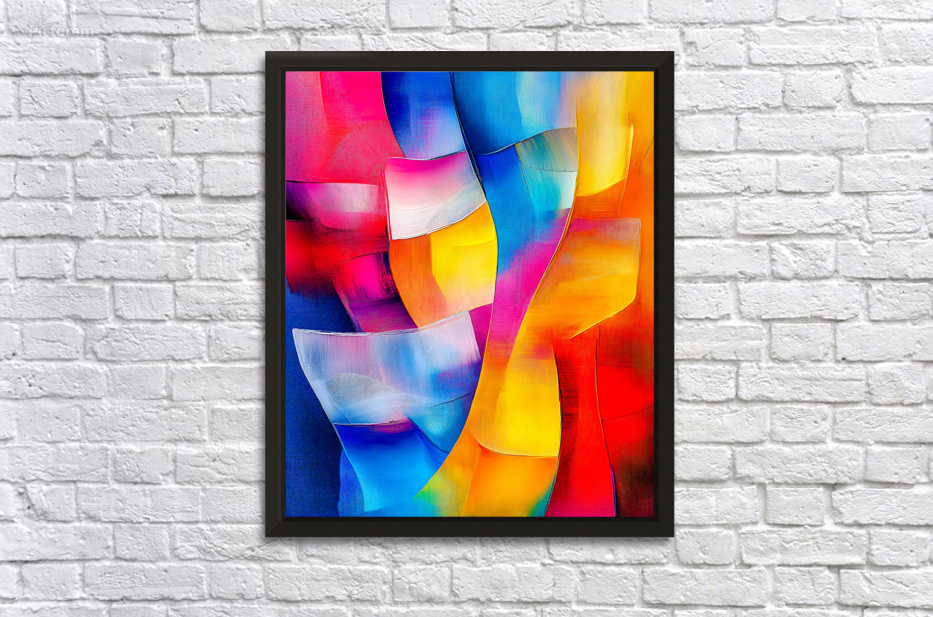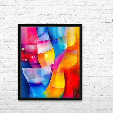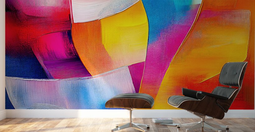 Vibrant curved shapes in a harmonious flow create a dynamic composition full of blues reds yellows and pinks. The interplay of colors and forms gives ...[+]