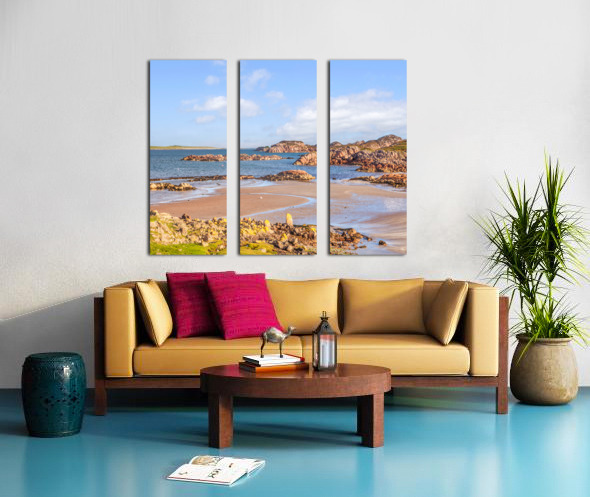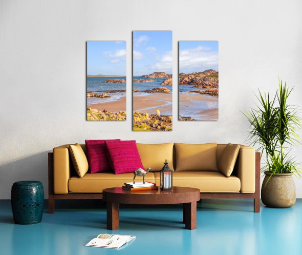 The beach at Fionnphort Mull Scotland with Iona in the background. Fionnphort is the ferry terminal for Iona. Canvas print